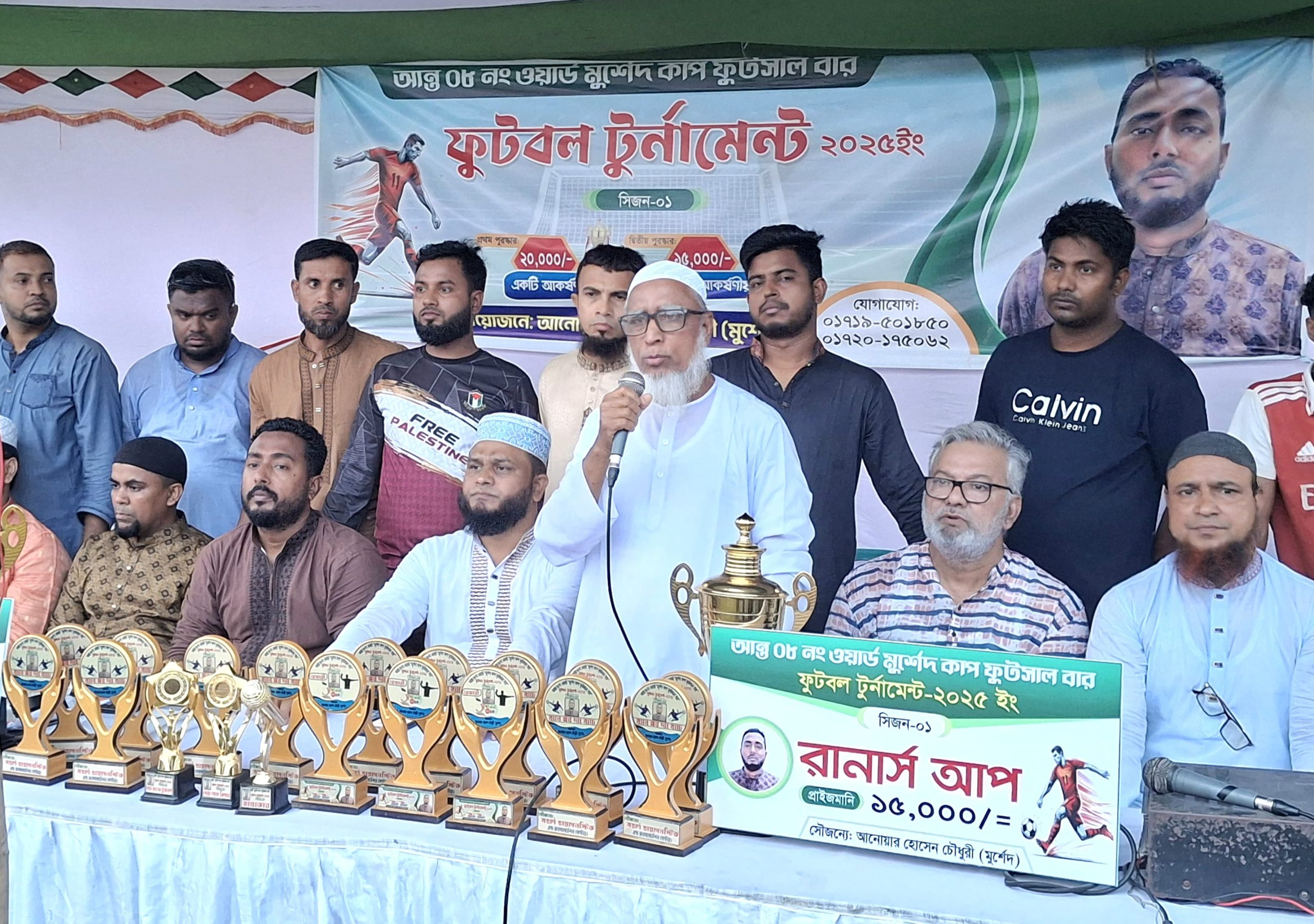 শুক্রবার (২৯ আগস্ট) বিকেলে মৌলভীবাজার সরকারি উচ্চ বিদ্যালয় মাঠে আন্ত: ৮ নং ওয়ার্ড মুর্শেদ কাপ ফুটসাল বার ফুটবল টুর্নামেন্ট ২৫ এর ফাইনাল খেলা ও পুরস্কার বিতরণী অনুষ্ঠানে প্রধান অতিথির বক্তব্যে তিনি এসব কথা বলেন।