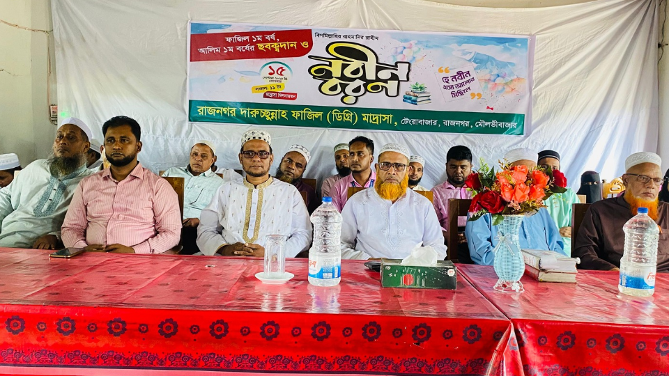 মৌলভীবাজারের রাজনগর দারুচ্ছুন্নাহ ফাজিল (ডিগ্রি) মাদ্রাসায় ফাজিল ১ম বর্ষ ও আলিম ১ম বর্ষের নবীনবরণ ও ছবক্বদান অনুষ্ঠান অনুষ্ঠিত হয়েছে।