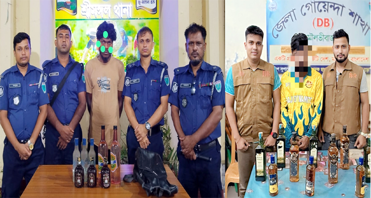 মৌলভীবাজার জেলা গোয়েন্দা শাখা (ডিবি) এবং শ্রীমঙ্গল থানা পুলিশের পৃথক অভিযানে ১৮ বোতল বিদেশী মদসহ সীতারাম দাস ও রাজেস রাজগড় নামে দুইজনকে আটক করা হয়েছে।