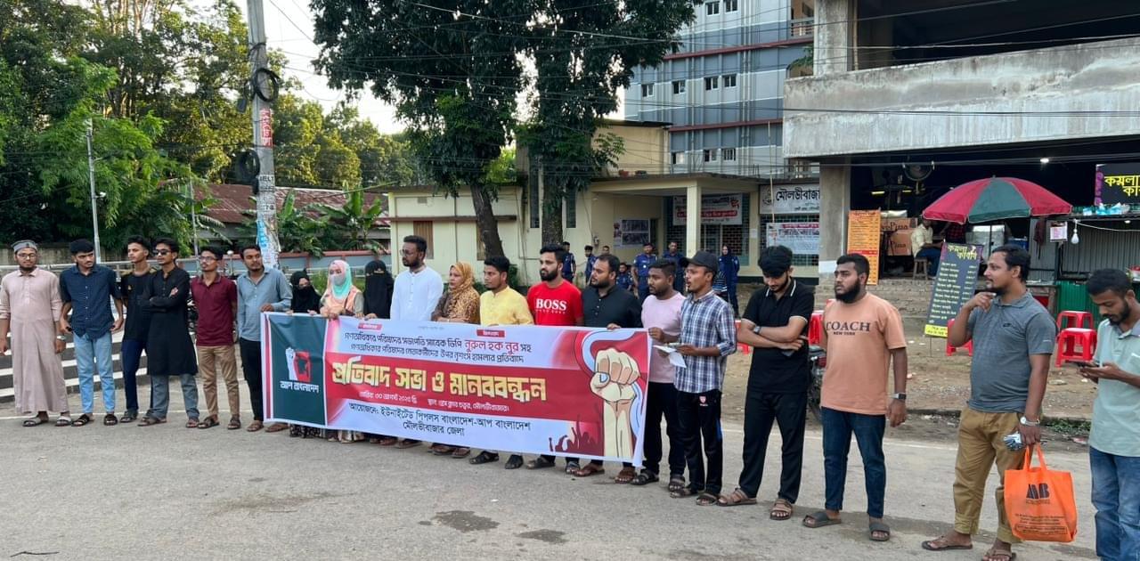 ভিপি নুরের ওপর হামলার প্রতিবাদে মৌলভীবাজারে আপ বাংলাদেশের মানববন্ধন ও প্রতিবাদ সভা