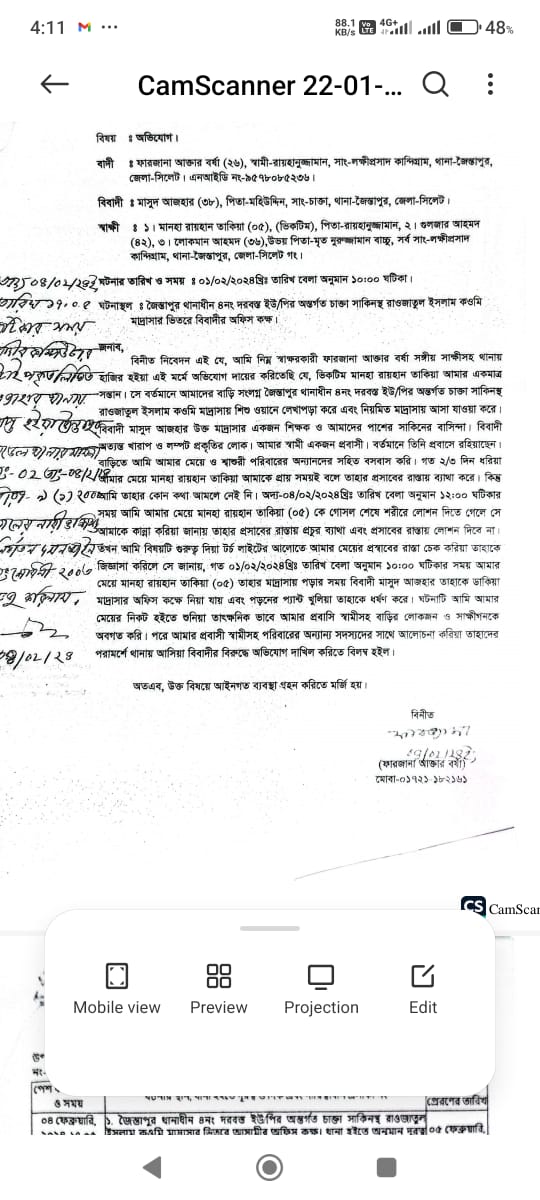 সিলেটের জৈন্তাপুর উপজেলায় একটি কওমি মাদ্রাসার দুই শিশু শিক্ষার্থীকে ধর্ষণের অভিযোগে দায়ের করা মামলায় কারাগারে থাকা এক শিক্ষক ও জমিয়তে
