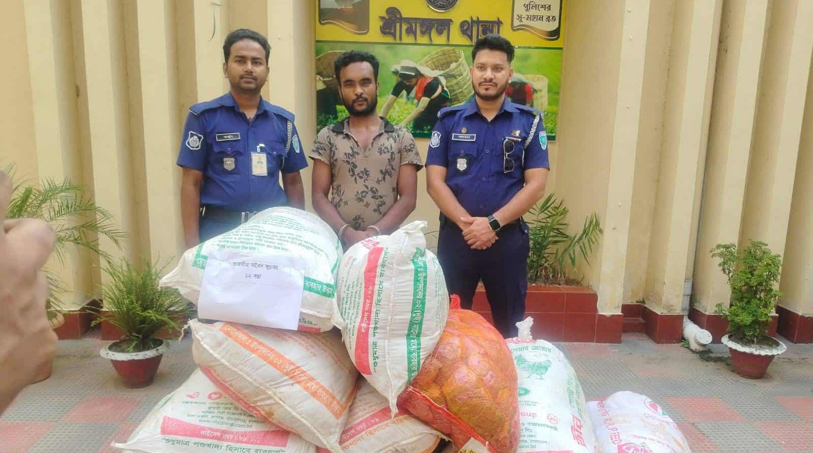 শ্রীমঙ্গলে বিপুল পরিমাণ ভারতীয় চোরাচালানের পণ্যসহ চিহ্নিত মাদক ব্যবসায়ী আটক